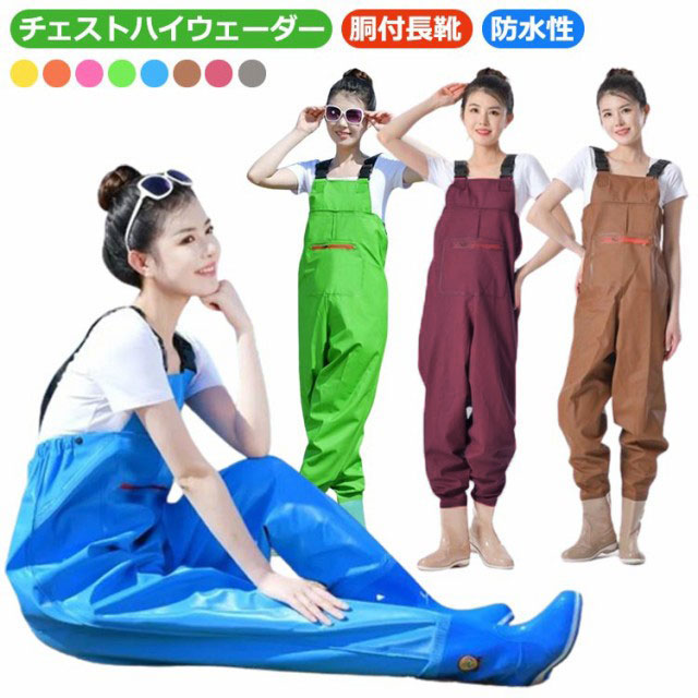 釣り 胸ポケット ウェーダー 漁業 防水 チェストハイ 渓流 海釣り 田植え 水産業 胴長 鮮魚店 作業服 チェストハイウェーダー 長靴 無地 掃除 農作業 水場仕事