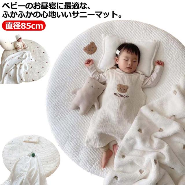 | ベビーのお昼寝に最適な、ふかふかの心地いいサニーマット。 リビングにぽんと置くだけで、赤ちゃんのためのスペースが作れます。 赤ちゃんをコロンと寝かせるだけでかわいい写真が撮れるマルチマットとしてもおススメ! 女の子、男の子どちらにも選びやすいデザインをご用意。 お昼寝やオムツ替え、プレイマットと用途も多彩です。ベビーからキッズまで長く使えて、汚れてもご家庭でお洗濯できます。 | |