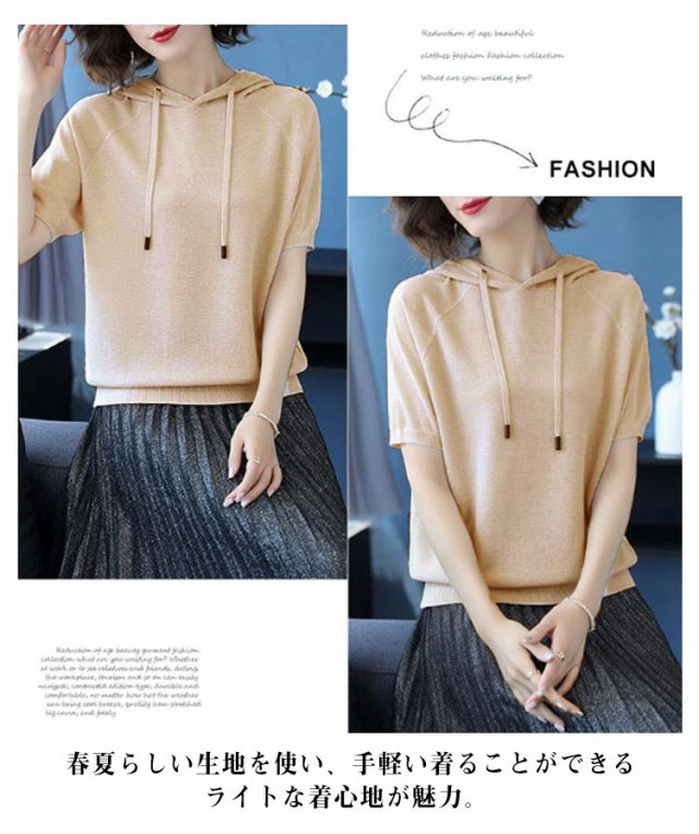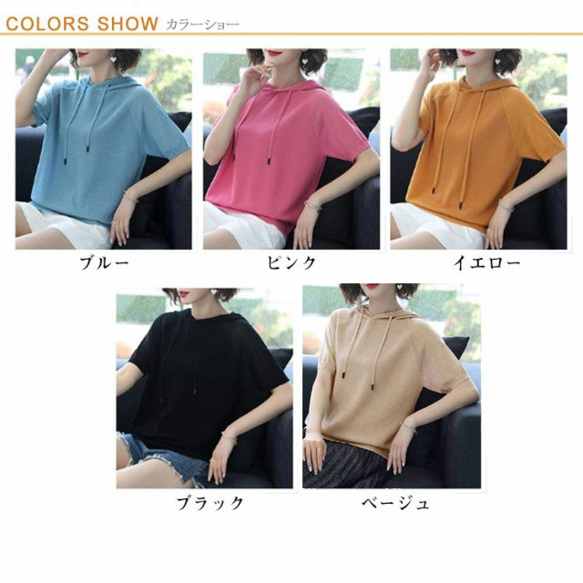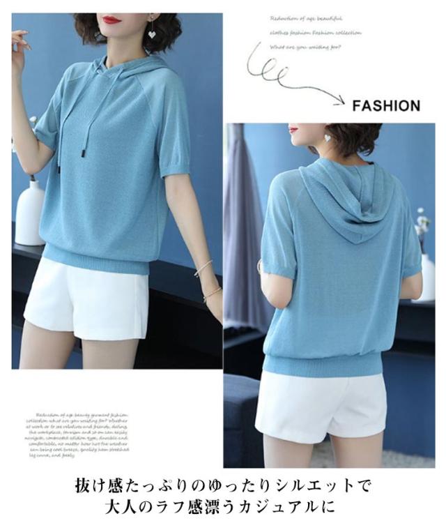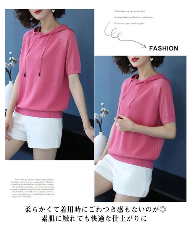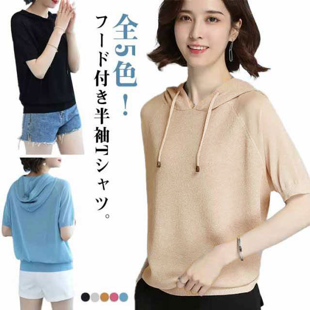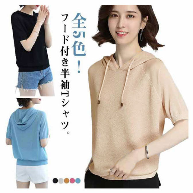 パーカー カジュアル 半袖パーカー レディース 半袖 フード付き 半袖Tシャツ Tシャツ 大きいサイズ トップス シンプル 夏物 プルーオーバー ゆったり カットソー スポーティ 着回し カジュアル 夏服 夏