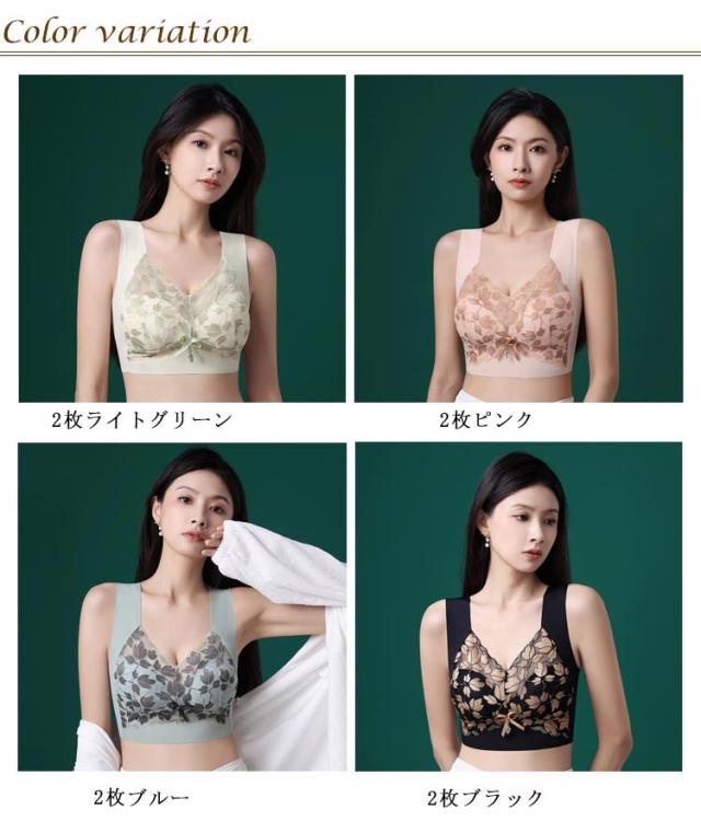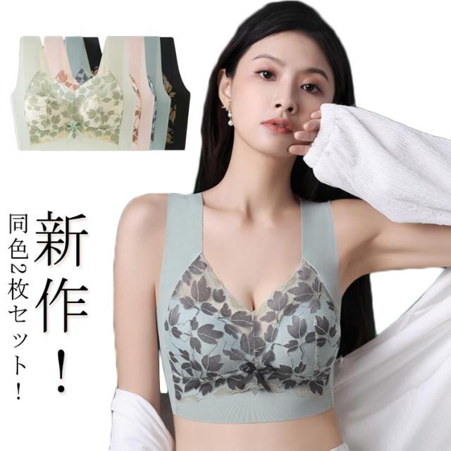ノンワイヤー シームレス 着楽ブラ 無縫製ブラジャー かわいい 育乳ブラ シームレス ナイトブラ 新作!無縫製 育乳 授乳ブラ 胸を包み込む ブラジャー ノンワイヤー 同色2枚 カップ付き ナイトブラジャー 昼夜兼用 ブラ 大きいサイズ たっぷりレース