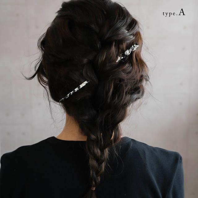 マーブル風とシェル風の柄が高見えで、サッとまとめたヘアアレンジをクラスアップしてくれます。