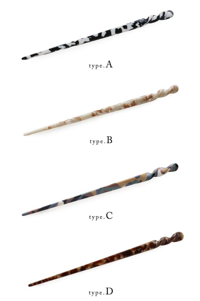 | トップのヒネリがアクセントになったミックスカラーのスティックタイプのかんざしです。 浴衣や着物などの和装シーンはもちろん、カジュアルコーデにも取り入れやすい落ちついたカラー展開。 マーブル風とシェル風の柄が高見えで、サッとまとめたヘアアレンジをクラスアップしてくれます。 | |