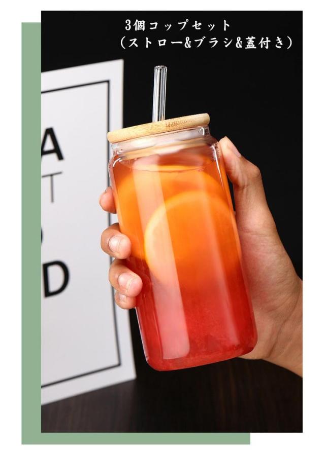 550ml グラス 【3個セット】コップ タンブラーウォーターボトル 450ml 蓋付き ストロー付き 【3個セット】コップ ボトル 軽量 透明 シンプル クリア 耐熱ガラス 熱湯にも対応 飲料カップ コップ コーヒー ミルク グラスコップ コーヒーカップ タンブラーグラス ギフト