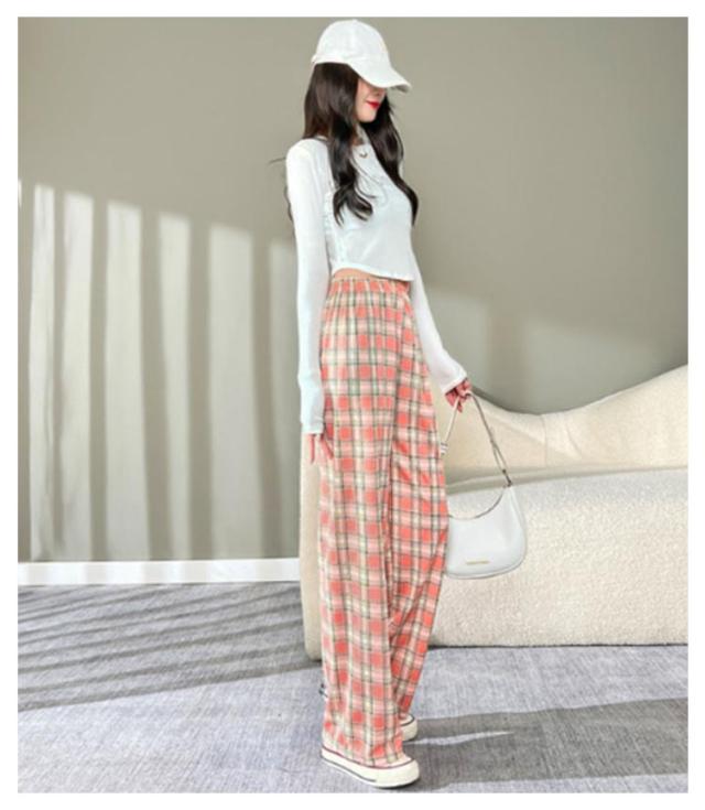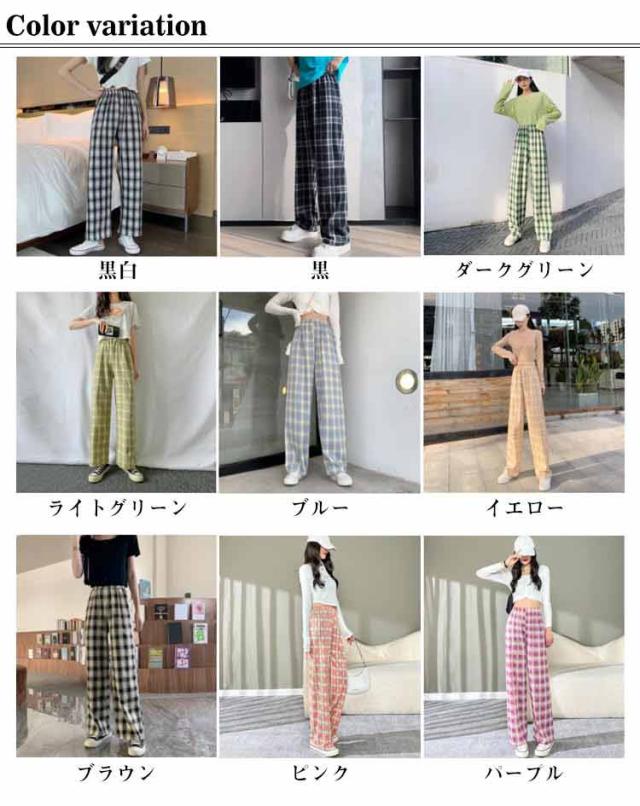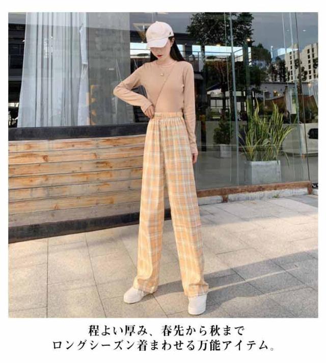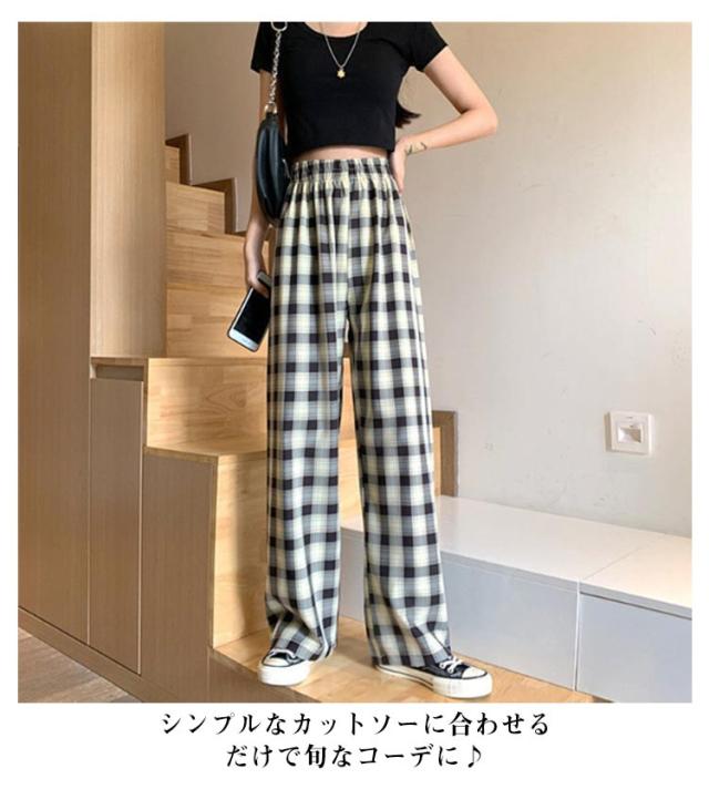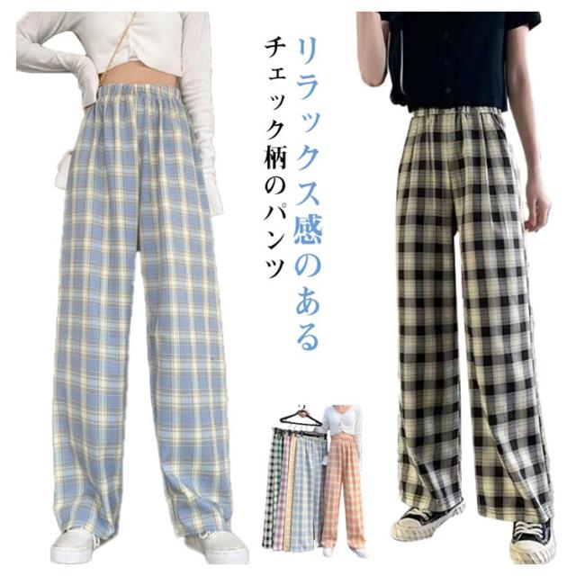 チェック柄パンツ レディース ワイドパンツ リラックスパンツ ウエストゴム ボトムス ロングパンツ 可愛い チェック柄 チェック柄パンツ レディースパンツ レディースワイドパンツ ストレート チェック 柄