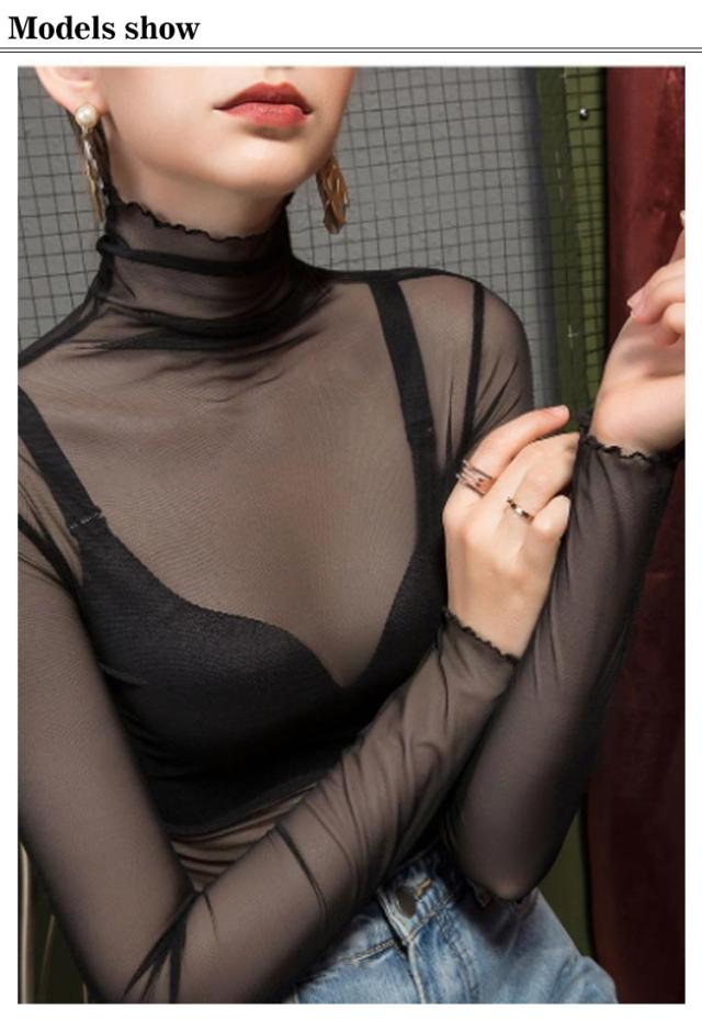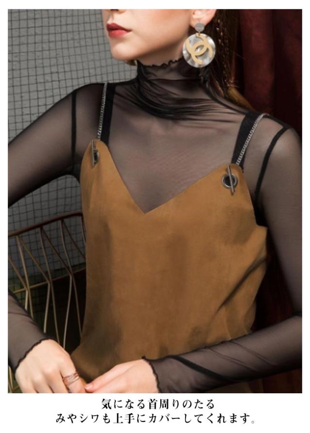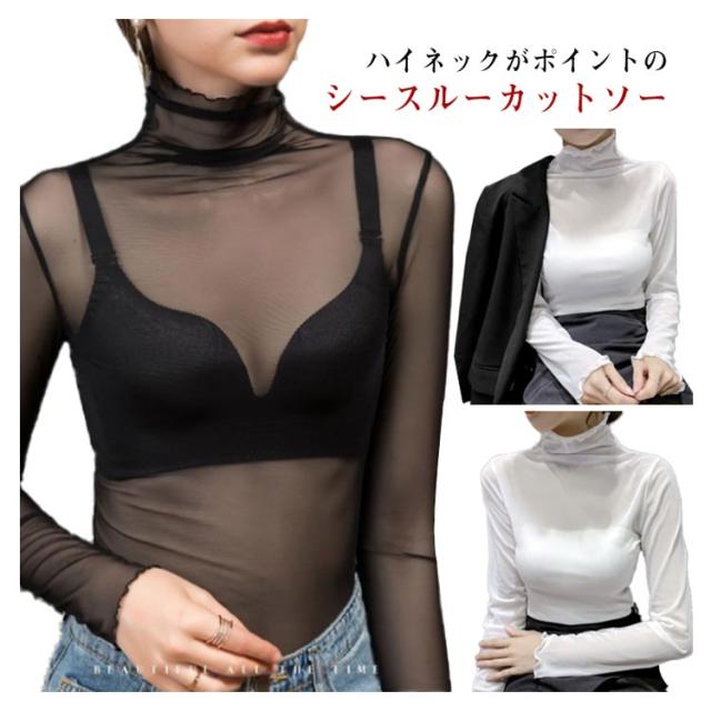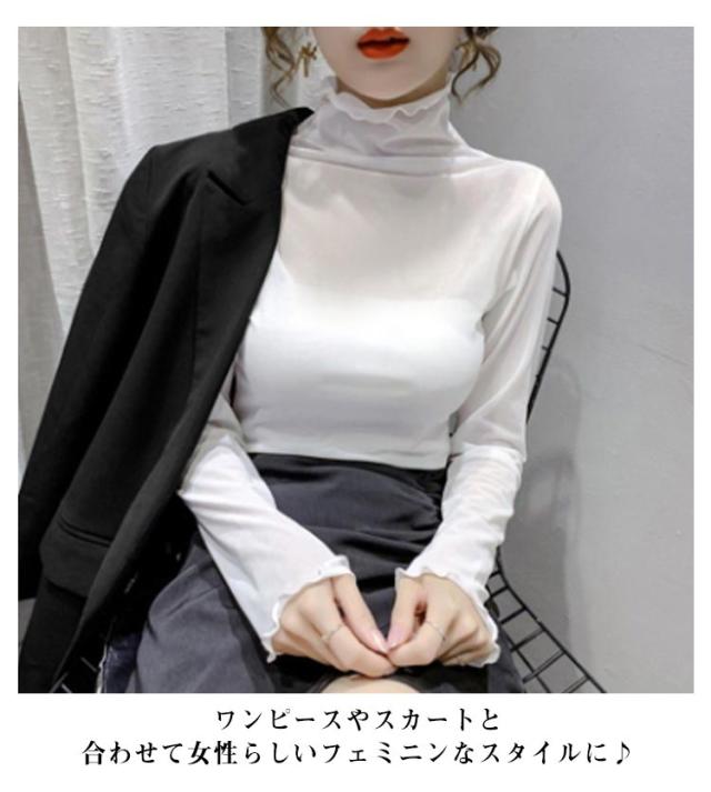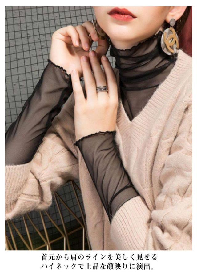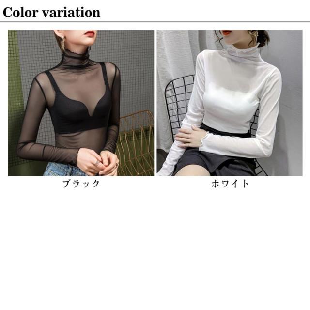 シアー ハイネック インナー トップス シアートップス ホワイト 薄手 大きいサイズ チュールトップス レイヤードレイヤードTシャツ 透け感 きれいめ 可愛い 重ね着 カットソー レイヤード風 レディース ブラック 紫外線カット 黒 白 着?せ 長袖