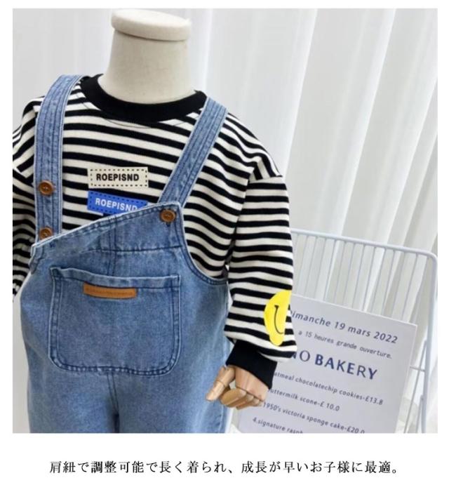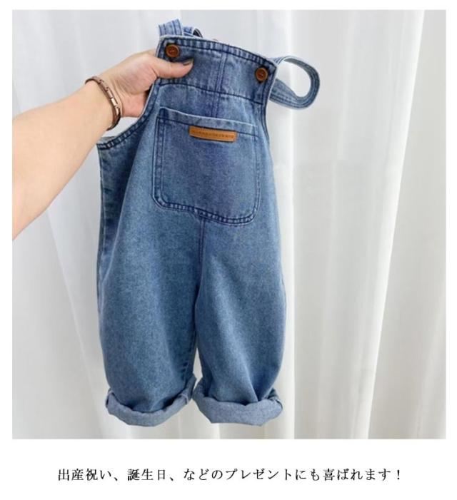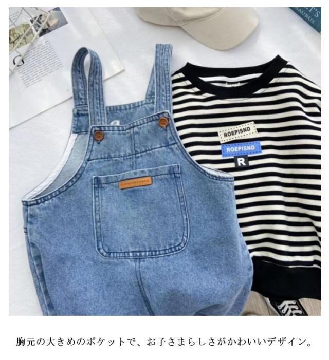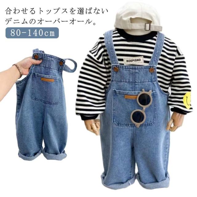 ベビー服 子供服 キッズ ジーンズ ジュニア ロールアップ デニム 男の子 サロペット オーバーオール ボトムス ロングパンツ 80cm 90cm 女の子 110cm 120cm 130cm 140cm 調整可能 ポケット付き 100cm