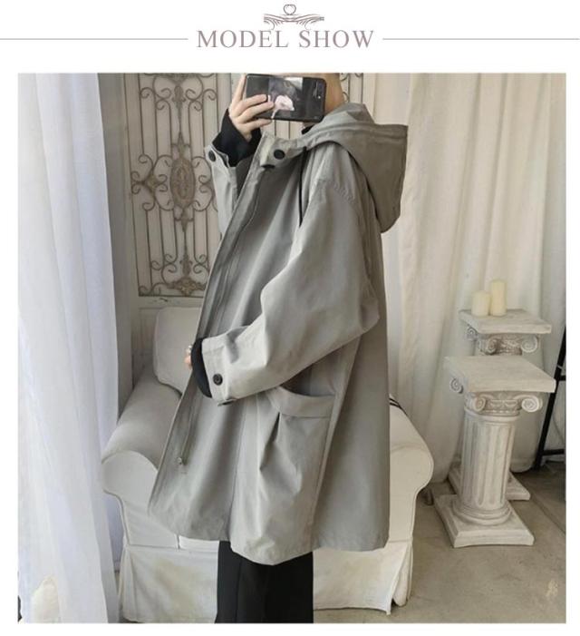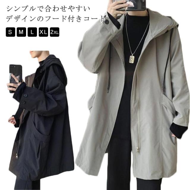 ゆったり 春物 フード付き 送料無料 オーバーサイズ 春 メンズ メンズ カジュアル ハーフコート コート 秋物 スプリングコート 裏地付き 送料無料 ライトアウター トレンチコート 薄手 ミドル丈 通勤 カジュアル 春 秋 冬 アウター シンプル