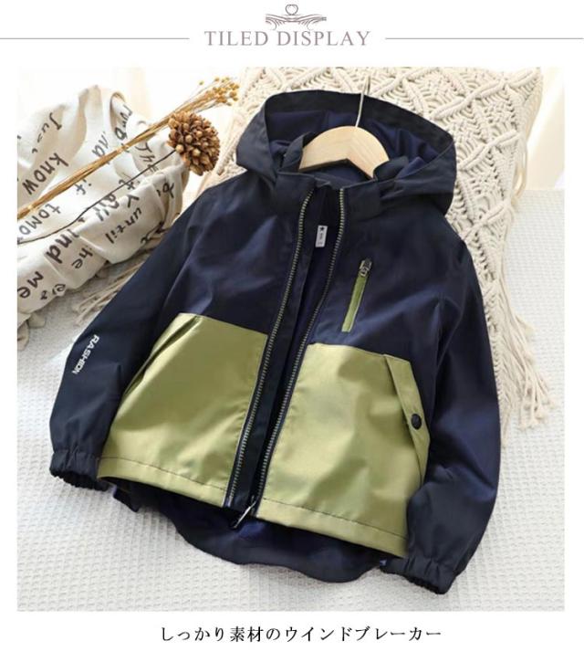 男の子 キッズ ジップアップパーカー ジャケット 140 キッズ ブルゾン 登校 韓国 軽量 子供服 アウター 配色 春 マウンテンパーカー 無地 可愛い フード付き 薄手 防風 撥水 小学生 裏メッシュ 春 秋 無地 カーキ 普段着 キッズ おしゃれ