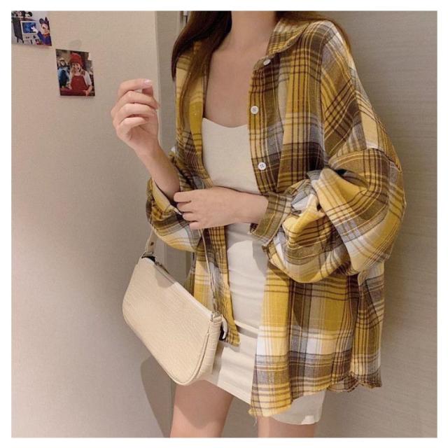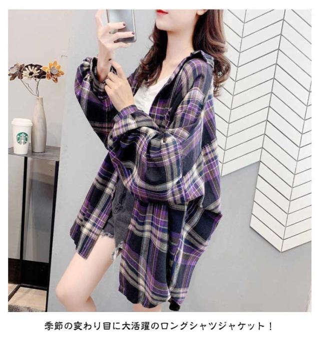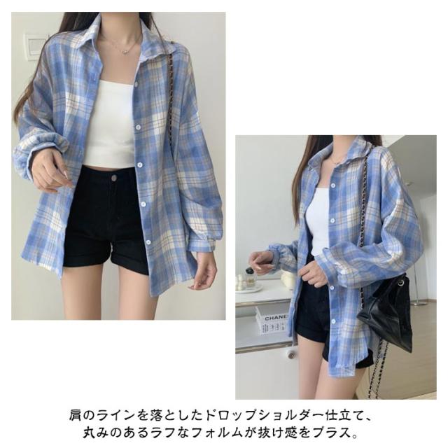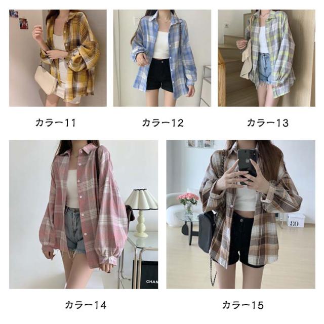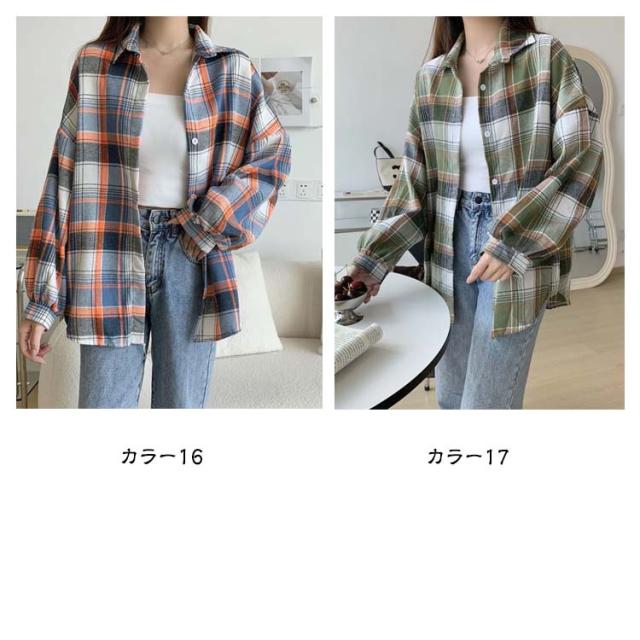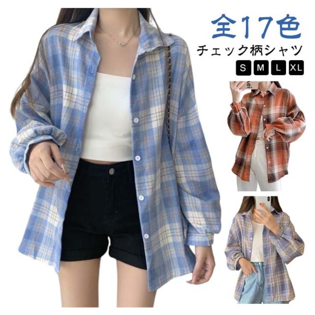 シャツ チェック柄 レディース ロングシャツ チェック柄シャツ シャツワンピース チェック柄 シャツジャケット チェックシャツ レディース ドロップスリーブ アウター 全17色 カジュアルシャツ ロング 羽織り 春服 秋服 大きサイズ ゆったり レイヤード チェック柄