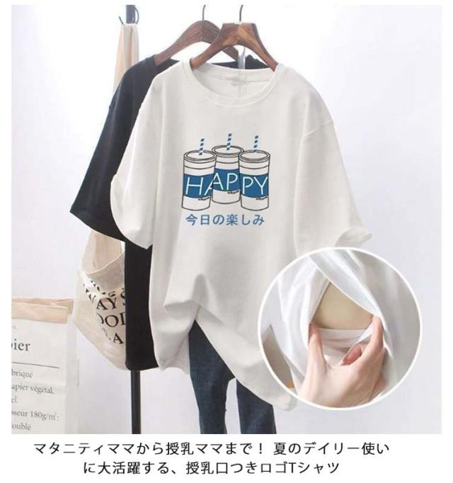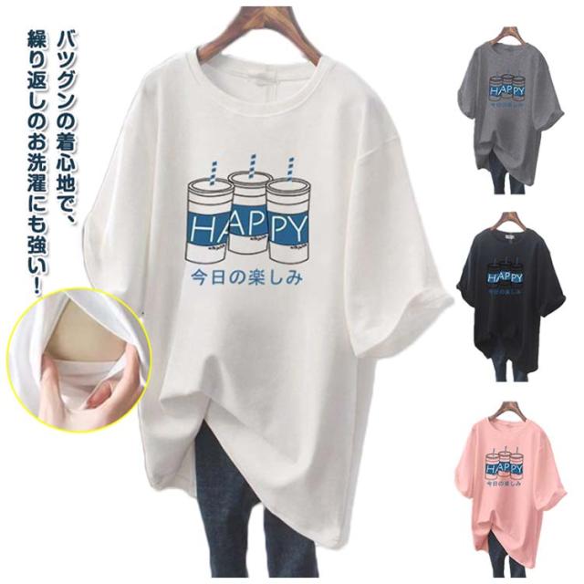 カジュアル 授乳服 おしゃれ 授乳服 ロング丈 授乳服 Tシャツ 半袖 大きいサイズ トップス インナー ロゴTシャツ 前開き チュニック 産前 出産準備 産後 ゆったり マタニティ カットソー 妊婦服
