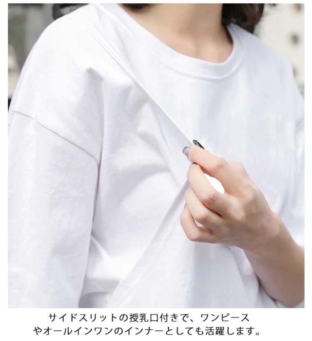 | 程よい厚みでサラリとした肌触りが特徴。バツグンの着心地で、繰り返しのお洗濯にも強い! マタニティママから授乳ママまで! 夏のデイリー使いに大活躍する、授乳口つきロゴTシャツ 程よいサイズ感で着まわしやすく、さらりとした肌触りで着心地の良さも魅力です。 サイドスリットの授乳口付きで、ワンピースやオールインワンのインナーとしても活躍します。 シンプルで女性らしいデザインなので、カジュアルになりすぎず、大人なママコーデにぴったりです。 | |