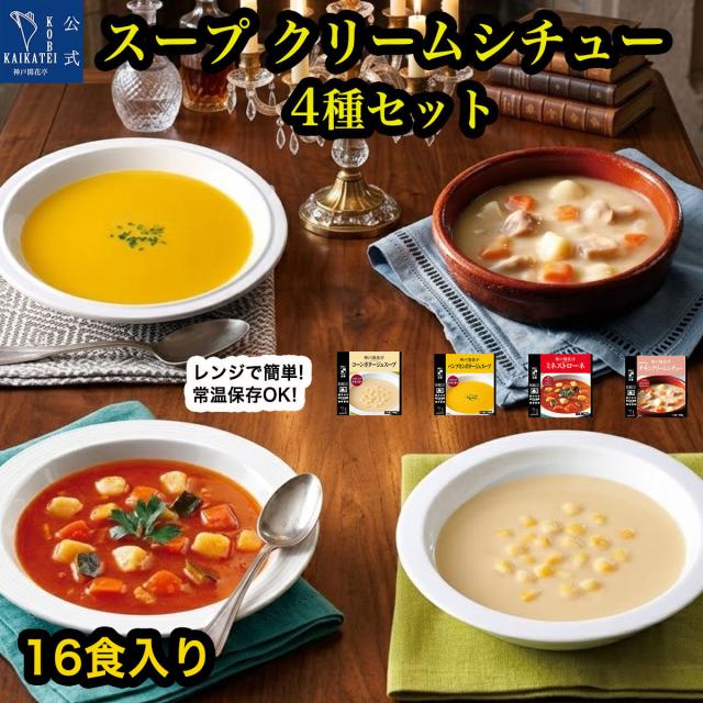 レトルト食品 惣菜 おかず 詰め合わせ スープ クリームシチュー 16個 セット 常温保存 洋食 レンジ調理 簡単 時短 まとめ買い 保存食 備蓄 非常食 一人暮らし 仕送り 神戸開花亭 送料無料 のし・包装不可 一部地域は追加送料あり