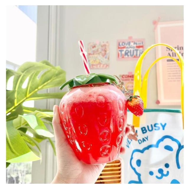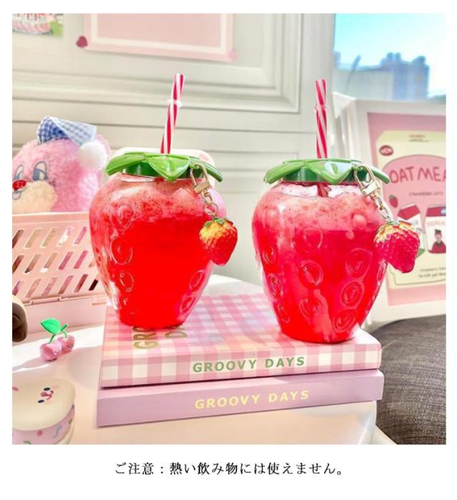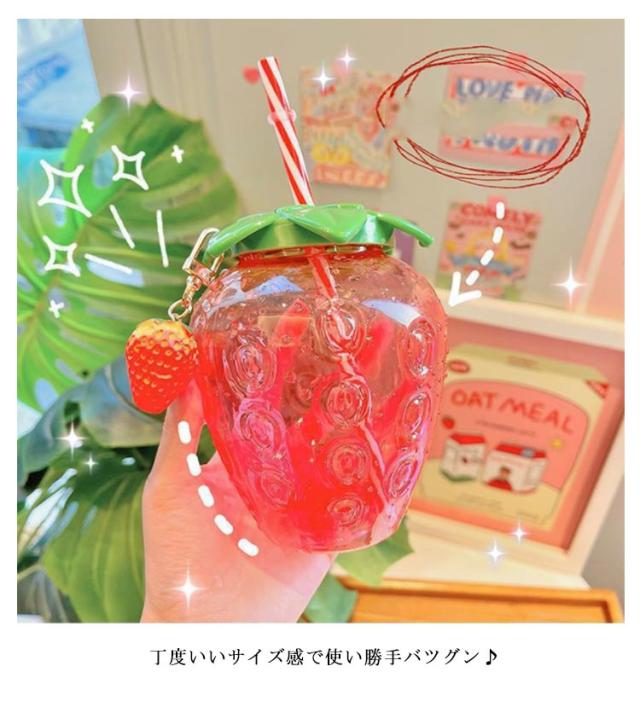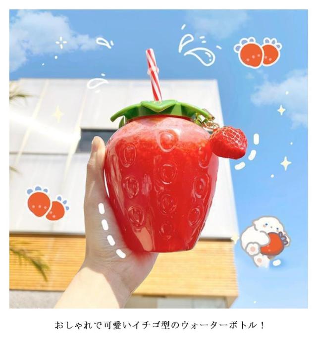 | 【5個セット】【ストロー/チャーム付き】【500ml】 おしゃれで可愛いイチゴ型のウォーターボトル! 丁度いいサイズ感で使い勝手バツグン♪ 話題のSNSで映える事間違いなし。 ご注意:熱い飲み物には使えません。 | |