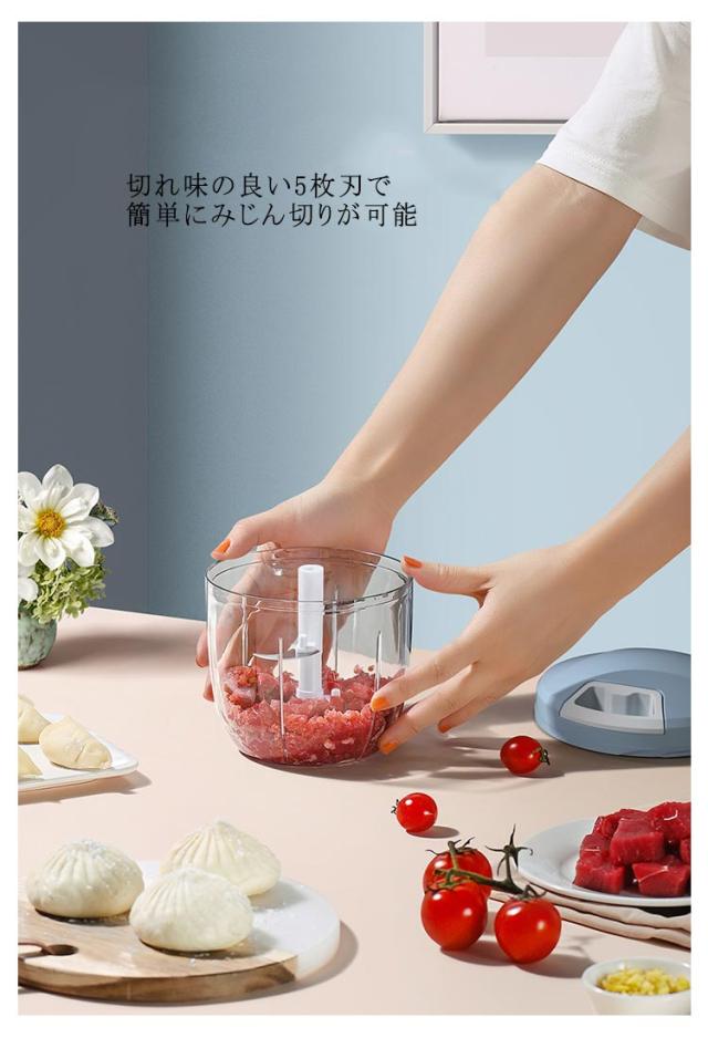 送料無料 食洗機対応 みじん切り 手動 フードプロセッサー ふたも洗える フードチョッパー みじん切りカッター スライサー 強化版 8秒でみじん切りができる! ぶんぶんチョッパー スーパー5 送料無料 5枚刃 大容量 1000ml
