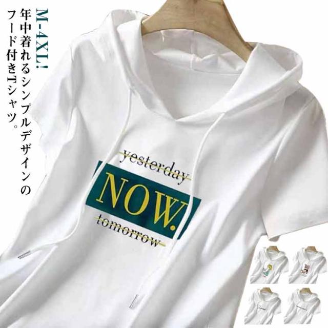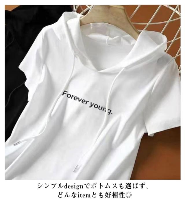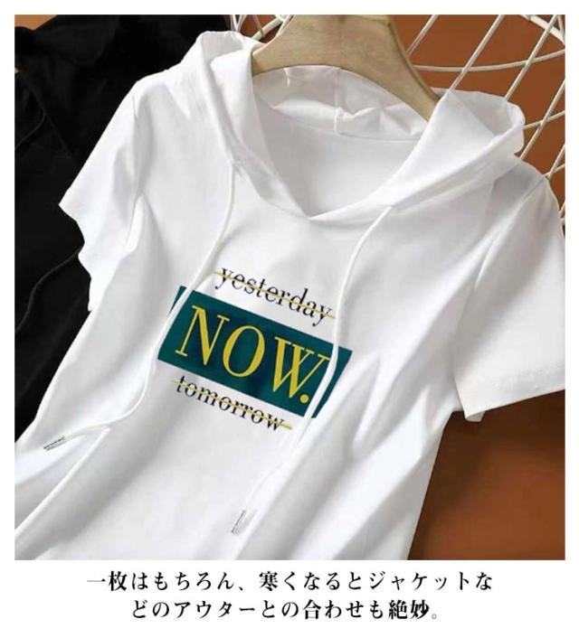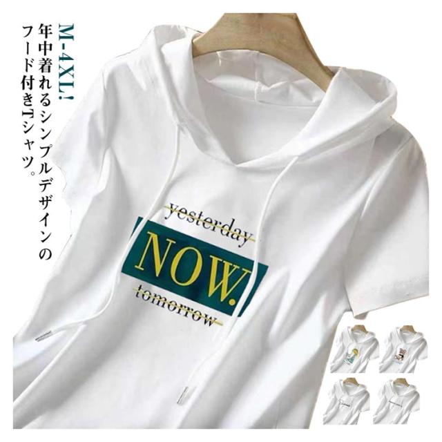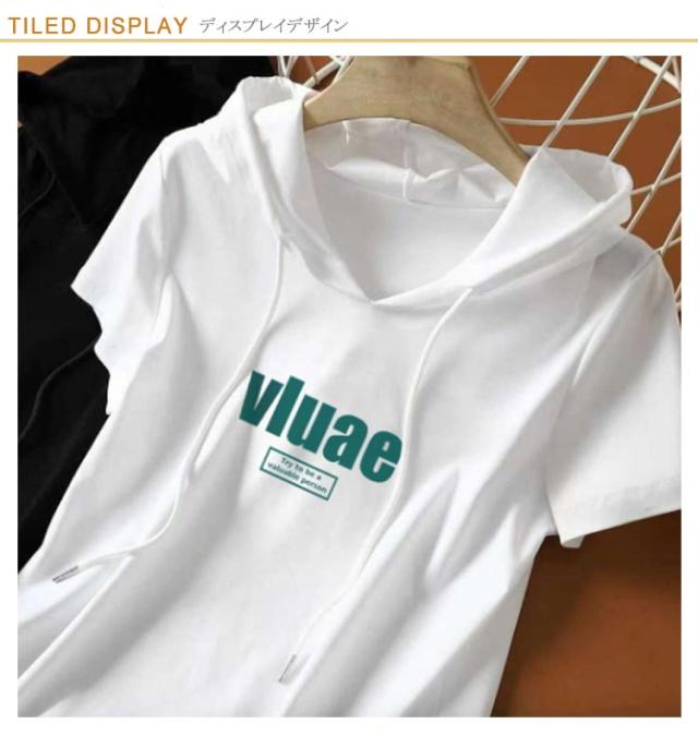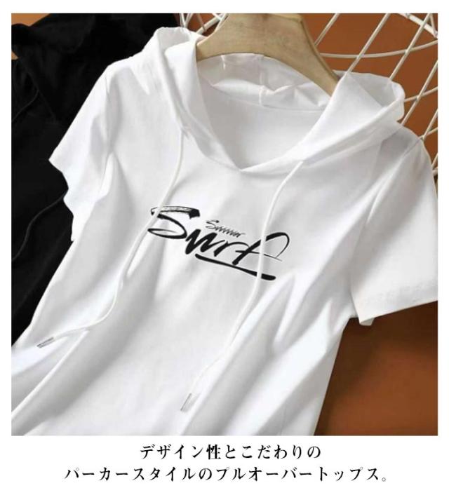 tシャツ パーカー カットソー パーカー フード プルオーバー 薄手 パーカーtシャツ トップス ロゴTシャツ オーバーサイズ パーカー 半袖 夏 Tシャツ ロゴ テーシャツ フード付きtシャツ レディース ビッグシルエット 体型カバー シンプル 大きいサイズ カジュアル