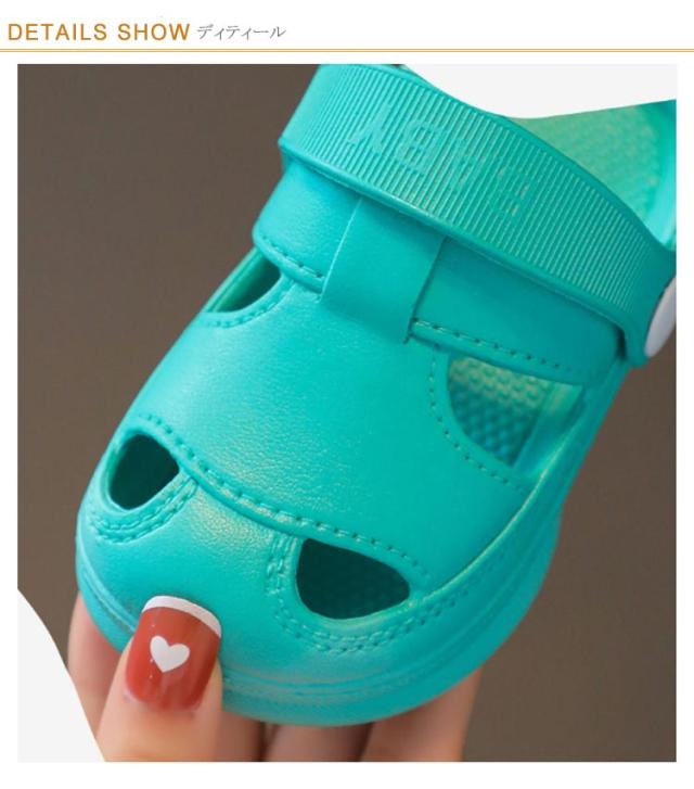 | 11.5-20cm!濡れても大丈夫!使い勝手の良いキッズ用サンダル♪ 健康的で耐久性のあるPVC素材でできており、柔らかく快適で、優れたクッション性と弾力性を備えています。 軽く柔軟性のある素材が足にフィットし脱げにくく、つま先と足の甲をしっかりカバーしてくれるのでケガを防止します。 汚れやすい砂場などで遊んでも、お手入れが簡単 お家の中でも、水回りやベランダに一足あると便利♪ 柔らかく弾力性に優れているので、ちょっとそこまでの外出でも気軽に履ける! | |