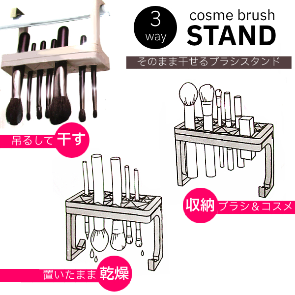 コスメ ブラシ スタンド そのまま干せる 立てて乾燥 逆さ 吊るして干す 収納 ブラシ立て 化粧品 清潔 ハンガー ハンギング 化粧筆 チップ ホルダー 3way