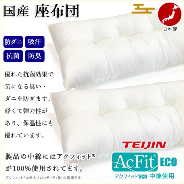 日本製 長座布団 60×110cm クッション 長ざぶとん アクフィット(R) 帝人 テイジン フロンティア 中綿使用 弾力 防ダニ 清潔 抗菌 防臭 職人が一つ一つ仕上げ 手作り ほこりが出にくい座布団 高級綿使用 弾力 国産 【1枚物】 【1個】