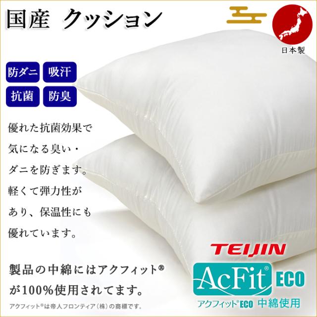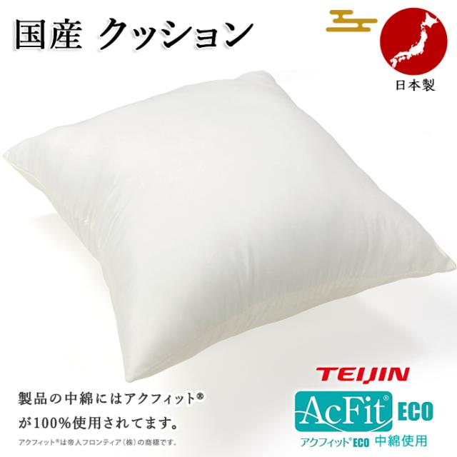 日本製 クッション 45×45cm ヌードクッション 中綿 帝人 アクフィット(R) テイジン フロンティア 職人が一つ一つ仕上げ 手作り ほこりが出にくい 高級綿使用 弾力 防ダニ 清潔 抗菌 防臭 国産 【1枚物】 【1個】