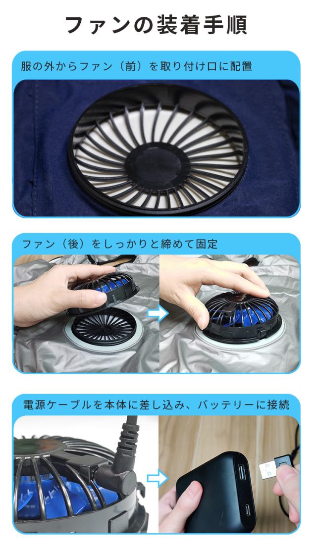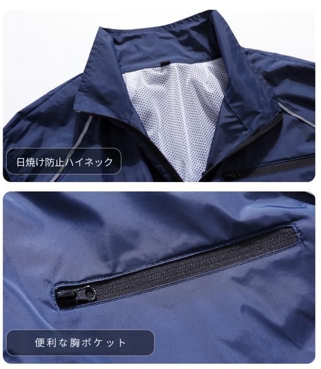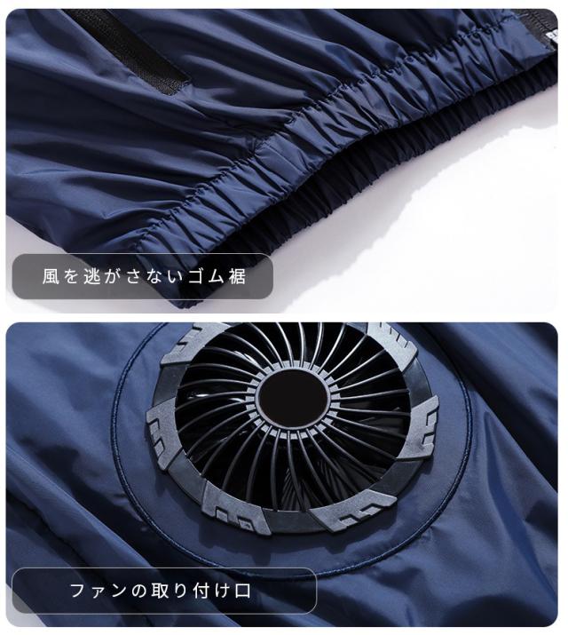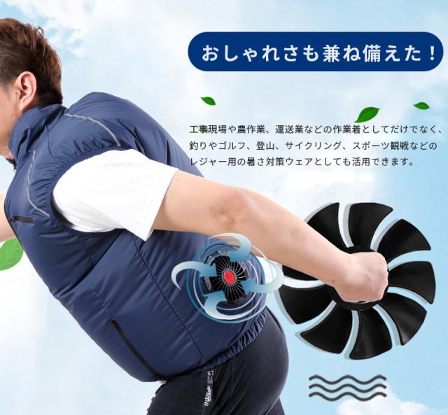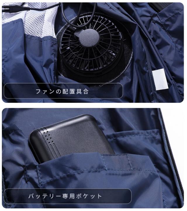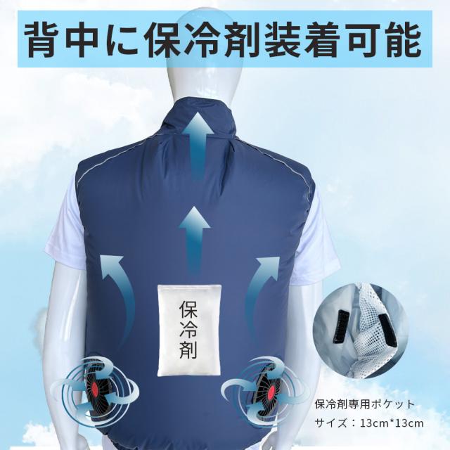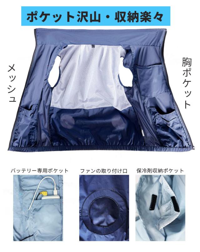 *保冷剤入れのポケットが付いているため、保冷剤入れると涼しささらにアップ。(*保冷剤付いていません)。生地の微細孔は通気性があり、左右の腰の辺りに取り付けられたファンを用い、衣服の中に外気を取り入れ、体の表面に大量の風を流すことにより汗を蒸発させ、体を瞬時に冷やし、全身を清涼感で包みます。炎天下の作業で涼しい服の使用範囲は非常に広く、高温の悪境、建築労働者、室内作業、屋外作業及び屋外探検など多くの場面で使用でき、暑さ対策と夏場の作業効率を上げられます。