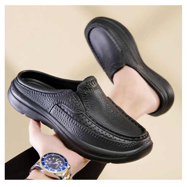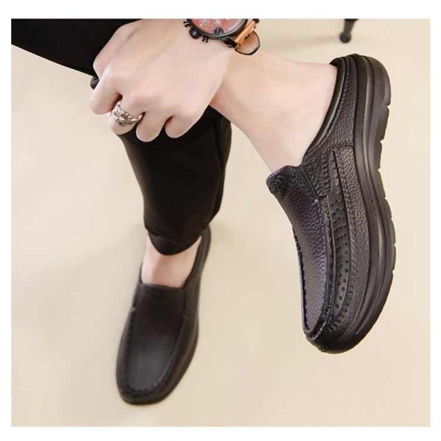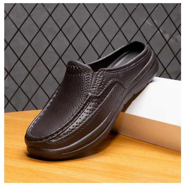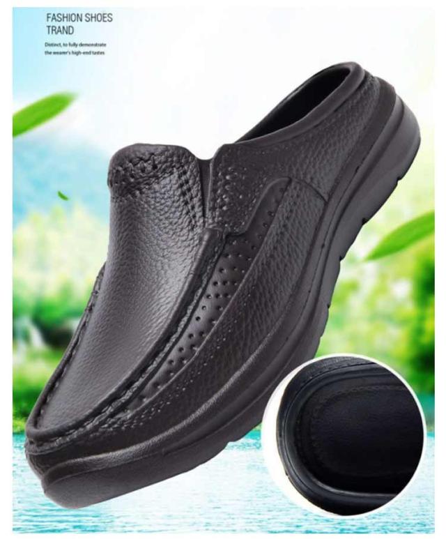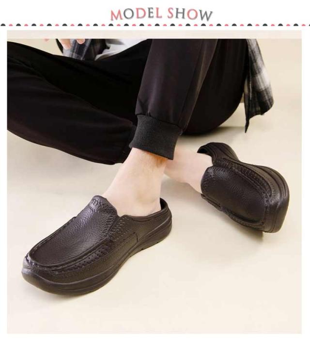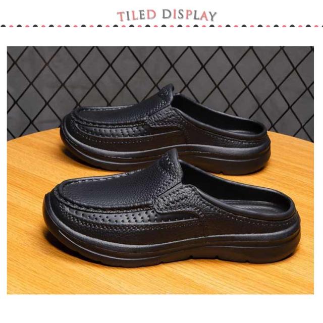 | 晴雨OK!紳士靴のスタイリッシュなビジネススリッパです。 アッパーには柔軟な素材を使用して、 しっとりとした上質な肌触りにこだわった。 凹凸のアウトソールは、滑りにくく安心して歩いていただけます。 かかと部分がないので、簡単に脱ぎ履きできるので足が蒸れなくて済みます。 EVA素材でとても軽く、水にも強い防水仕様で、汚れたらザブザブ水洗い可能! 事務所、オフィス、社内、室内履き替え用、ショッピング、来客、お出かけなどにも魅力的! | |