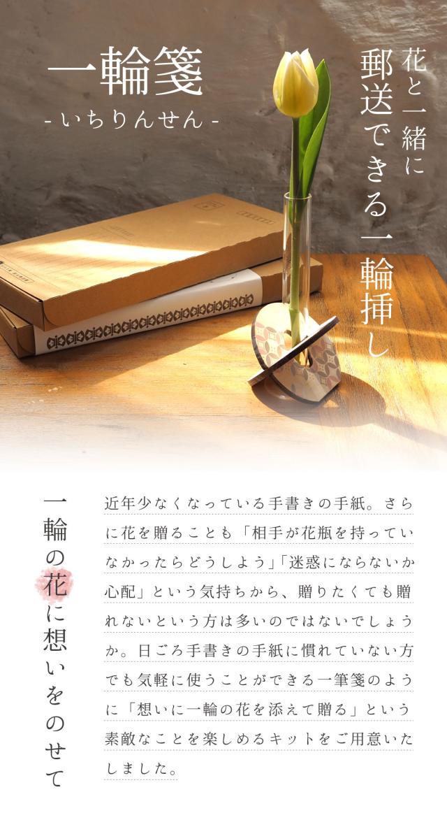お花を添えて郵送できる組み立て式の一輪挿し。