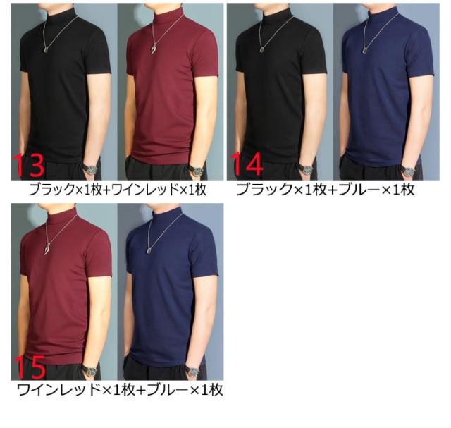 無地 半袖 ハイネック メンズ ゴルフtシャツ Tシャツ ストレッチ モックネック カットソー 夏 メンズtシャツ モックネックシャツ ハイネックtシャツ トップス スポーツウェア ランニング ゴルフウェア 半袖Tシャツ 作業着 父の日 春 2枚セット 送料無料