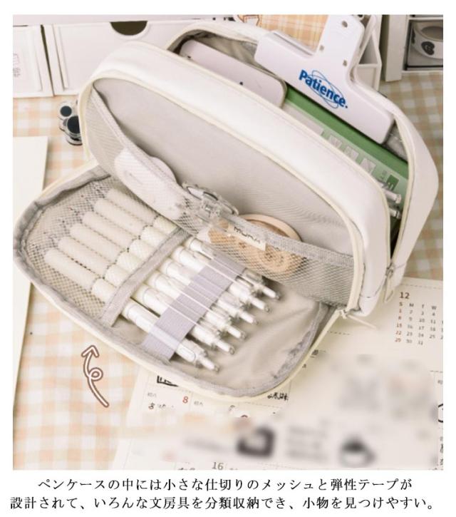| 軽いのに大容量ペンケース!小学生に必要なものがしっかり収納できます。 ペンケースの中には小さな仕切りのメッシュと弾性テープが設計されて、いろんな文房具を分類収納でき、小物を見つけやすい。 65本のペン(※ペンの太さによって異なる)、消しゴム、付箋、ハサミ、定規、メジャー、修正テープなどの小物もたっぷり収容できます。所持品や文房具の保管に最適です。 荷物が多くても、横向きにも前ポケットにもランドセルの空いたスペースに入ります。 自分のお気に入りの文房具と合わせたり、自分の好きな色に囲まれて勉強してモチベーションUP。 | |