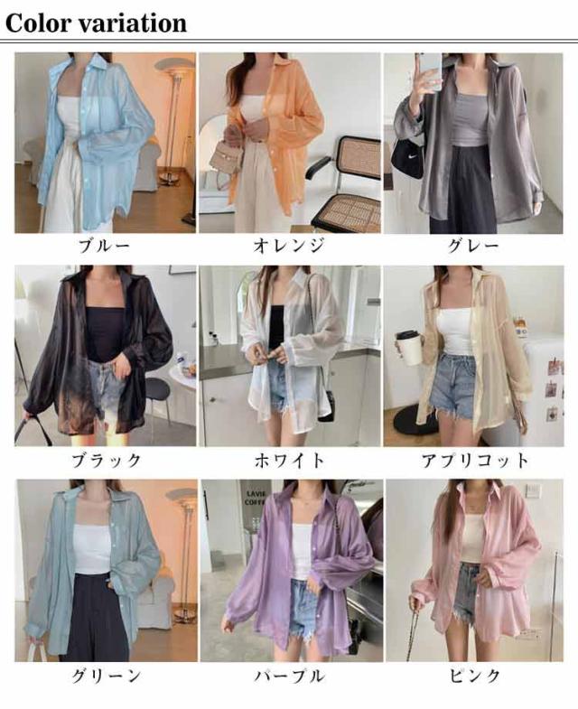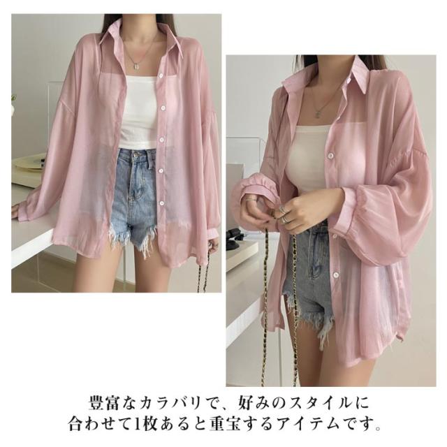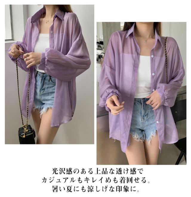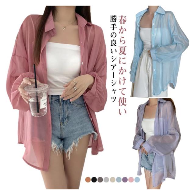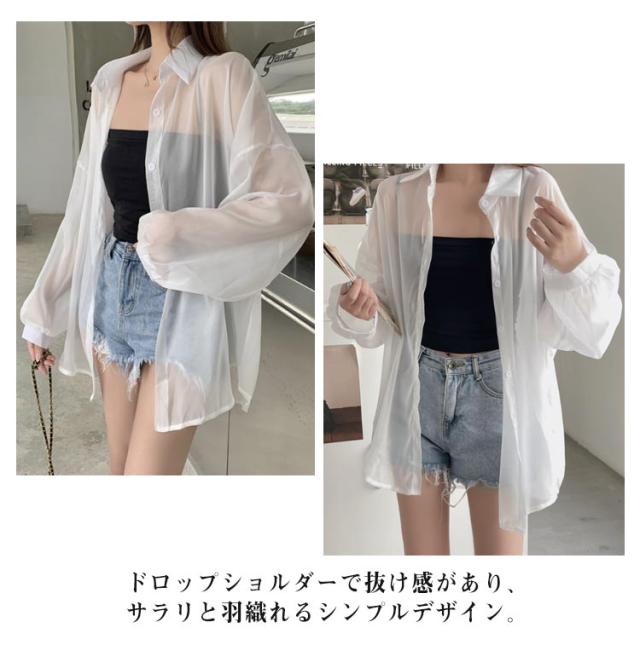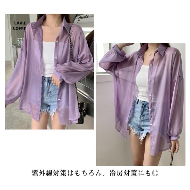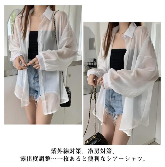 UV対策 シアーシャツ 透け感 紫外線対策 シャツ 日よけ対策 体型カバー 冷房対策 重ね着 長袖 羽織 ゆったり 薄手 無地 オーバーサイズ 通気性 シャツ ロング丈 着?せ 可愛い トップス レイヤード風 シンプル 通勤 通学