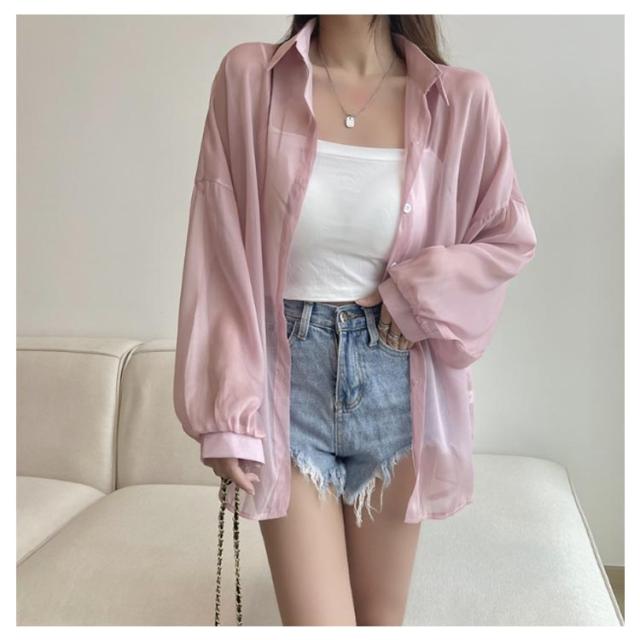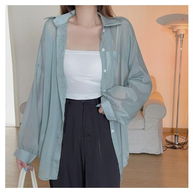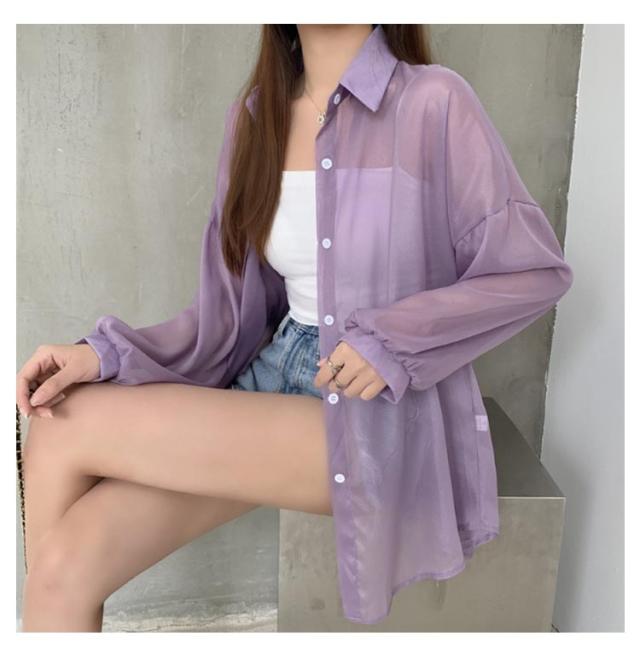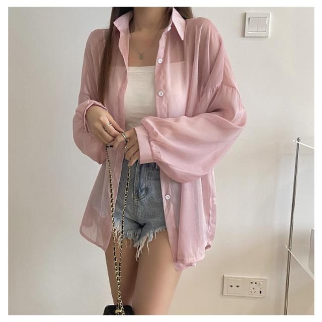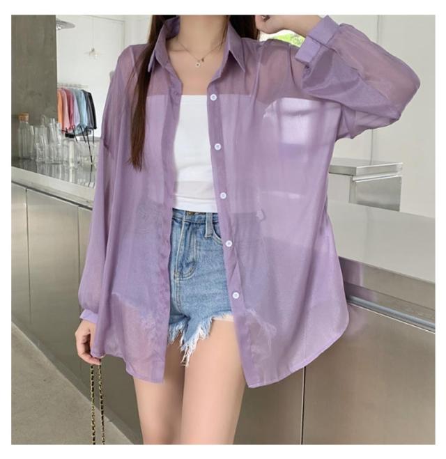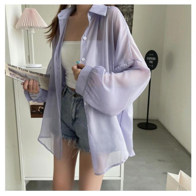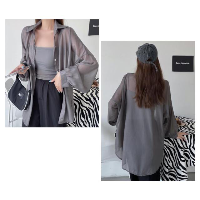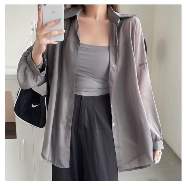 UV対策 シアーシャツ 透け感 紫外線対策 シャツ 日よけ対策 体型カバー 冷房対策 重ね着 長袖 羽織 ゆったり 薄手 無地 オーバーサイズ 通気性 シャツ ロング丈 着?せ 可愛い トップス レイヤード風 シンプル 通勤 通学