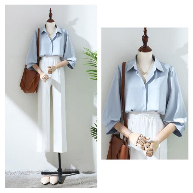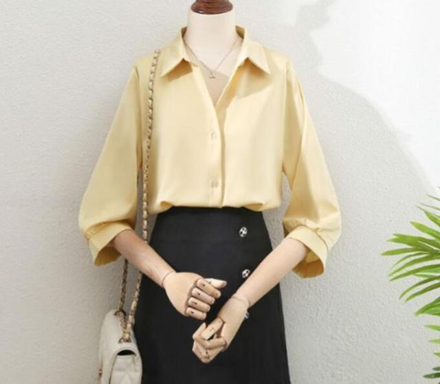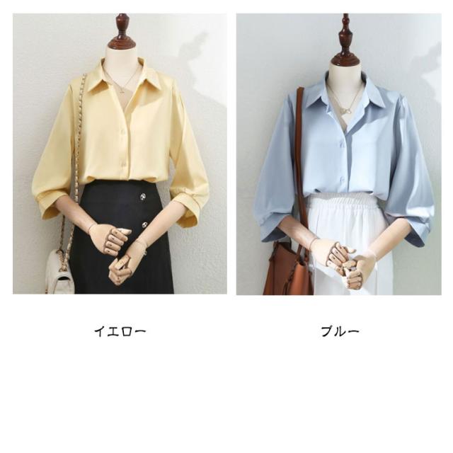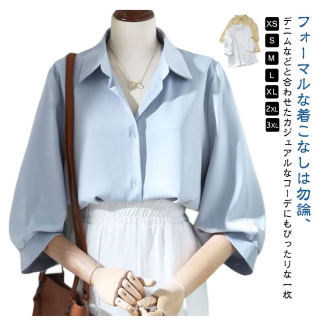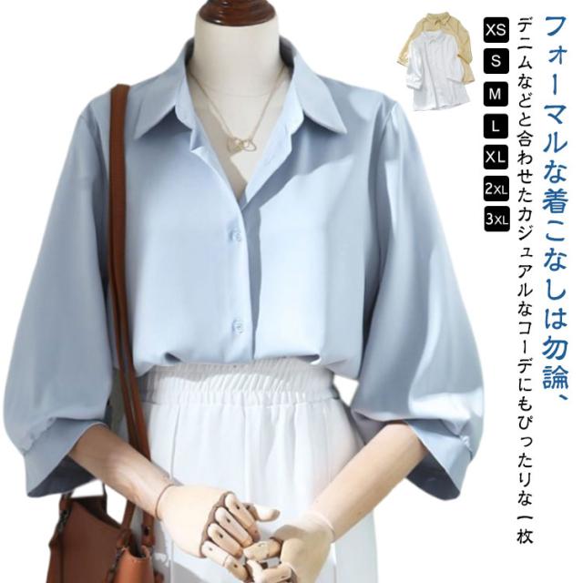 きれいめ 定番 ブラウス ワイシャツ レディースブラウス 事務服 シャツ 七分袖 フォーマル オフィス 定番 おしゃれ ワイシャツ 大きいサイズ フェミニン カジュアル レディース 白 ホワイト イエロー ベージュ ブルー