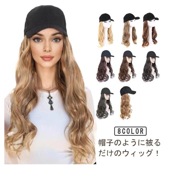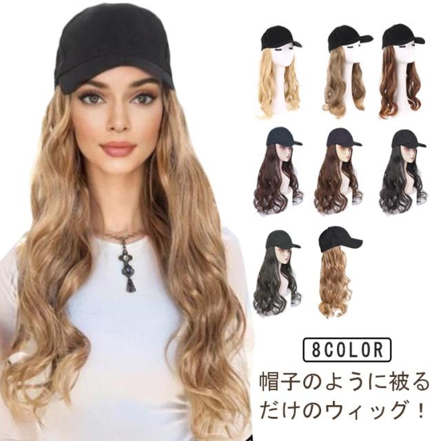 ウィッグ 女性用 ロング レディース 髪付き帽子 帽子一体型 巻き髪 女性用 キャップウィッグ かつら 帽子付きウィッグ 小顔効果 ウィッグハット 簡単 自然 便利 おしゃれ