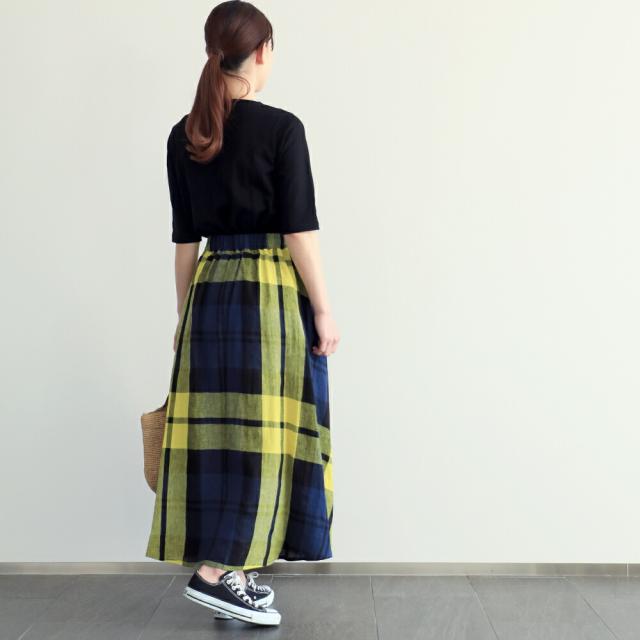 裾に向かって広がるフレアシルエット。 ふわりと軽やかなリネン素材