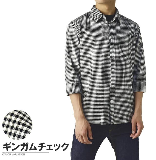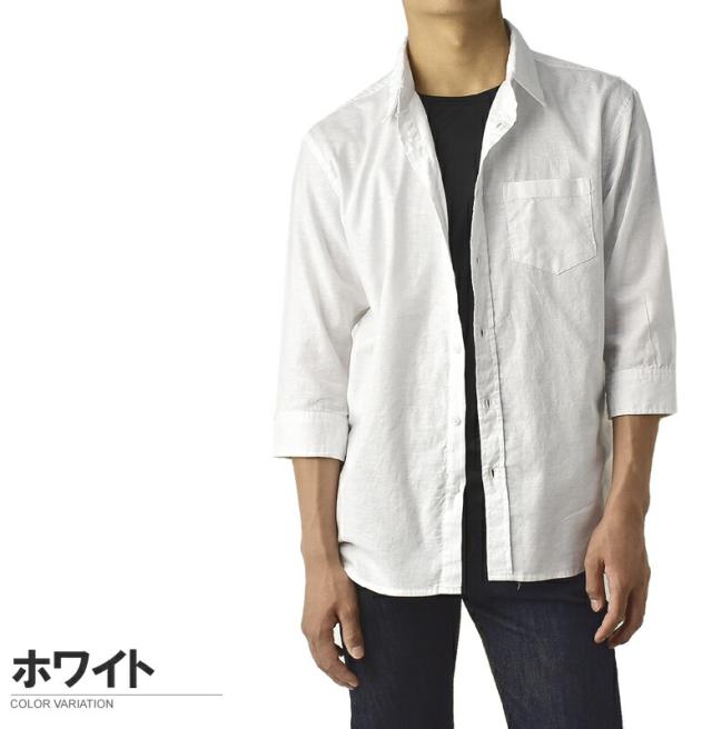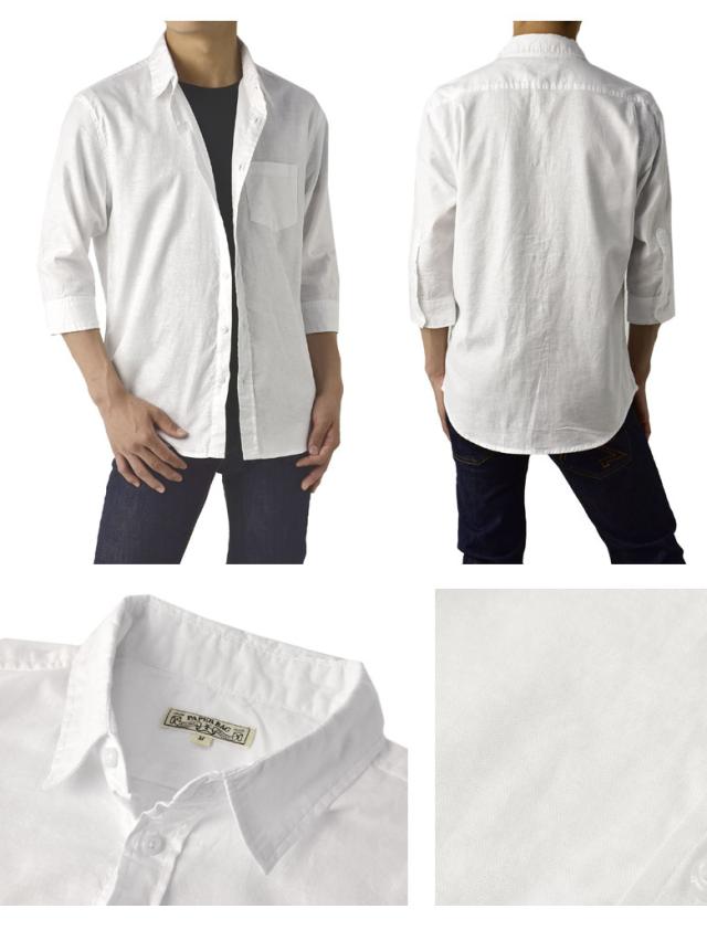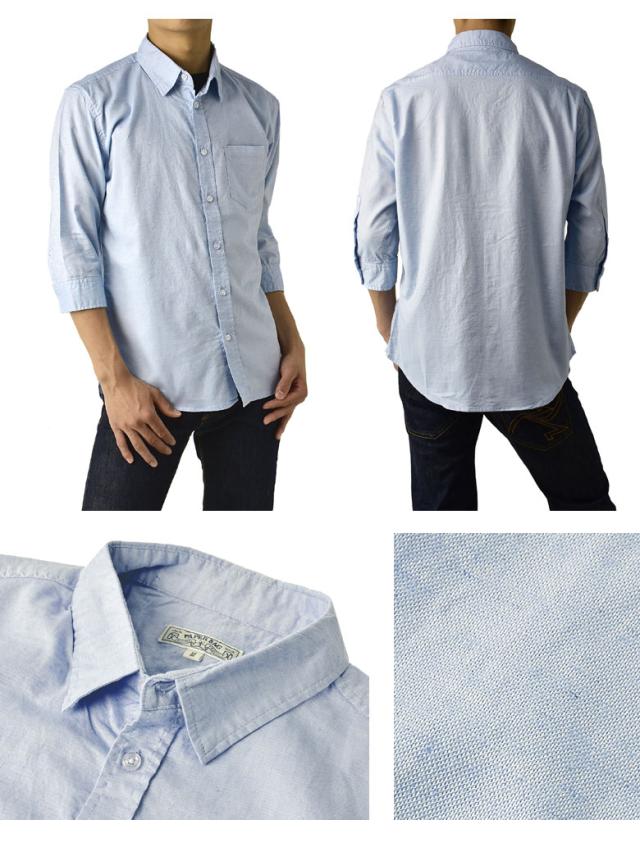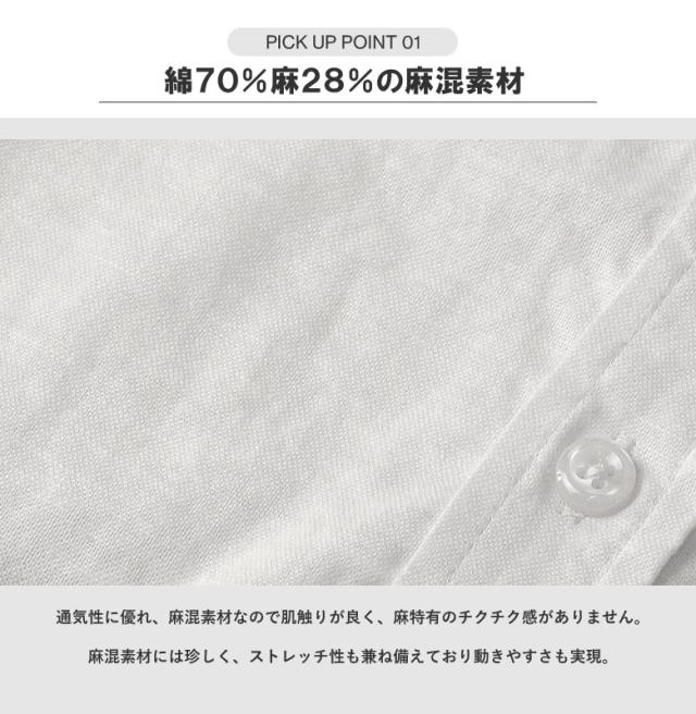 シャツ 7分袖 麻混 レギュラーカラー カジュアルシャツ リネンシャツ メンズ クールビズ ストレッチ ヘンプ コットン オフィス【A1A】【パケ1】