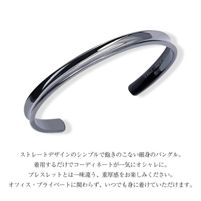 ストレートデザインのシンプルで飽きのこない細身のバングル。
