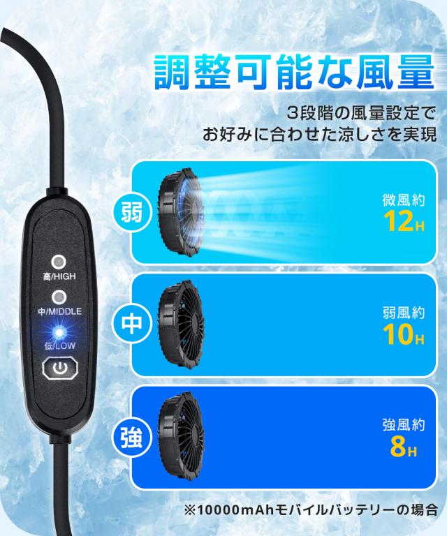 空調ウェア に付属される高性能の9枚羽根ファンは、強力でありながら、ムラの少ない風で音を抑え、好みや体感によって「弱、中、強」の3段階風量調節できます。コントローラー付きで風量調節、ファンの運転開始・停止を簡単に操作可能です。また、ベストのファン取り付け穴は補強されたため、従来品より抜群な耐久性を持つファン付き作業服 !