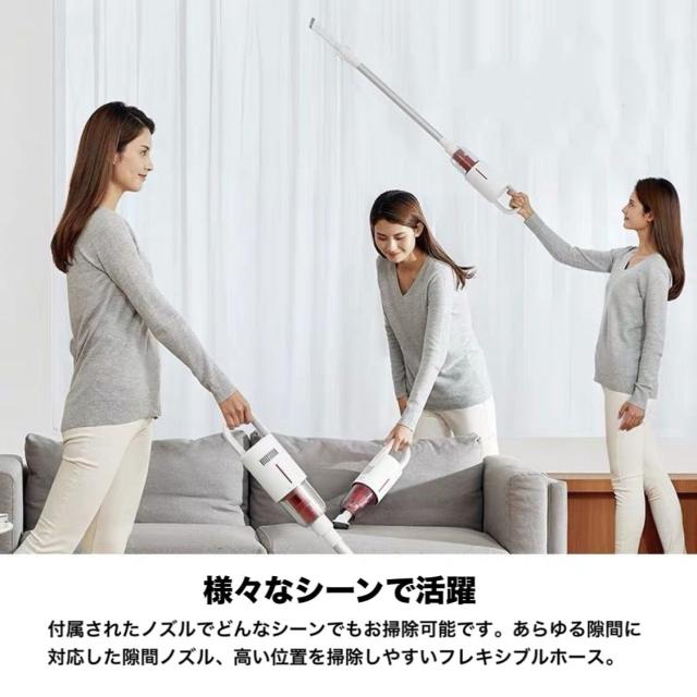 【6way仕様&軽量0.8KG】スティック掃除機は、伸縮パイプと隙間ノズルを簡単に組み立てて、スティッククリーナーとハンディクリーナーに自由に変身できます。階段や狭い場所、高い場所にも長時間使用できます。掃除機本体は0.8kgの超軽量デザインで、女性やお年寄りの方でもお気軽に利用できます。また、長時間使用しても腰痛を感じません。