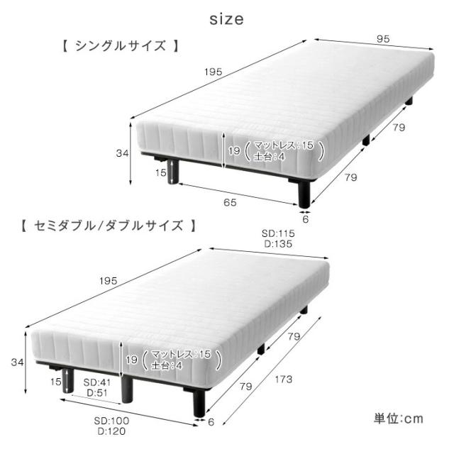 シングルベッド マットレス付き 脚付きマットレス ポケットコイル 高反発 2層 脚付 脚付きベッド 脚付ベッド 脚付きマットレスベット マットレスベッド ベッド 足付き 足付きマットレス