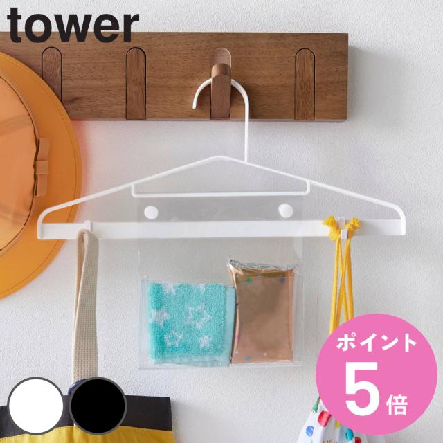 山崎実業 tower お片付けハンガー タワー ( 4903208019170 タワーシリーズ ハンガー おかたづけハンガー お片付け フック付き 透明ポケット キッズハンガー 通学 通園 衣類ハンガー 衣類収納 制服 鞄 収納 キッズ 洋服掛け )
