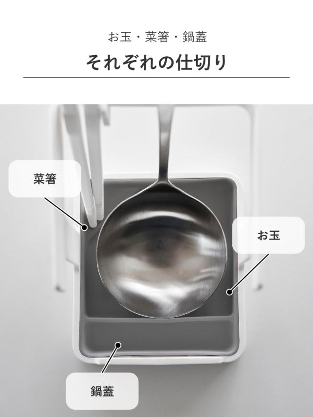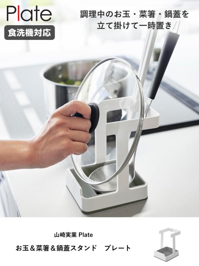 山崎実業 Plate お玉&菜箸&鍋蓋スタンド プレート ( プレートシリーズ お玉スタンド 鍋蓋スタンド 菜箸スタンド ふた置き 食洗機対応 お玉 菜箸 鍋ふた 鍋フタ お玉ホルダー お玉置き なべ蓋置き タブレットスタンド )