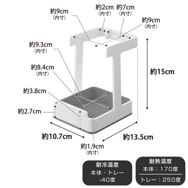 | サイズ | 約 幅10.7×奥行13.5×高さ15(cm) 内寸 本体上部:約幅9×奥行13×高さ14.5cm お玉トレー部:約幅9.3×奥行8.4×高さ2.5cm 鍋蓋トレー部:約幅9.3×奥行1.9×高さ2.5cm |