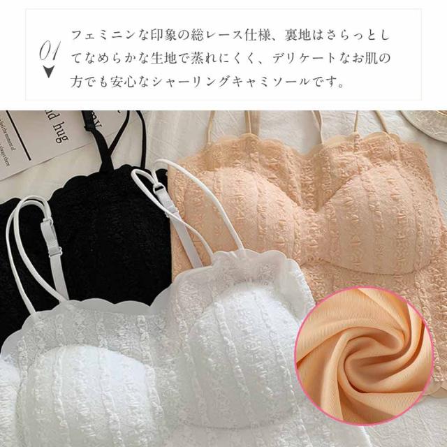 ●フェミニンな印象の総レース仕様、裏地はさらっとしてなめらかな生地で蒸れにくく、デリケートなお肌の方でも安心なシャーリングキャミソールです。