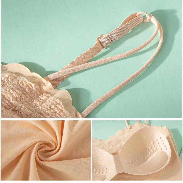 チューブトップ カップ付き ノンワイヤー 盛れる シームレス セクシー チラ見せ ずれない レース リブ ショート丈 ベアトップ ブラトップ レディース インナー