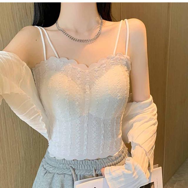 キャミソール タンクトップ 見せキャミ 見せブラ キャミブラ スーツインナー 部屋着 ブラ内蔵 下着 肌着 盛る 美胸 落ちない レイヤード シャーリング ノースリーブ パッド付 アンダーゴム無し 肩紐調節可 短め ダンス ロング かわいい おしゃれ 御洒落 春 夏 ヨガ ダンス スポーツ 韓国 女性 母の日 ギフト プレゼント
