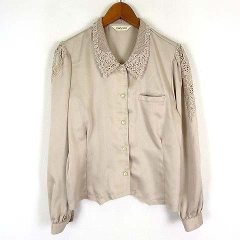 【中古】ANKYARA ブラウス 花柄 フラワー レース 刺繍 とろみ 落ち感 長袖 M ライトベージュ レディース