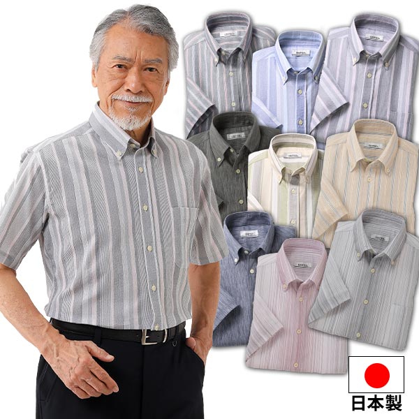 プレゼント ギフト 誕生日 クリスマス 父の日 敬老の日 勤労感謝の日 贈り物 男性 メンズ 紳士 シニア 高齢者 年配 おすすめ 日本製 国産 半袖 シャツ トップス 高島ちぢみ 通気 吸水 速乾 吸汗 サラサラ