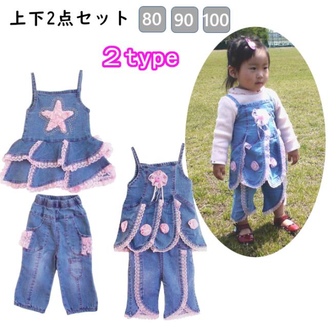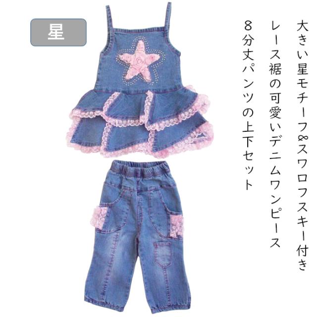 女の子 ワンピース 子供服 8分丈パンツ 女の子 ノースリーブワンピース キッズ 80 90 100 子供服 春 夏 秋