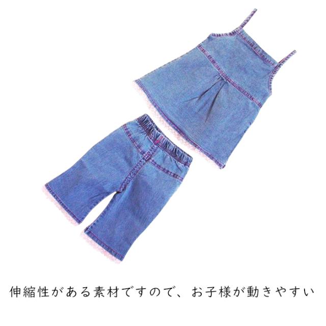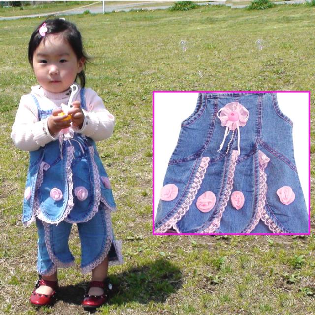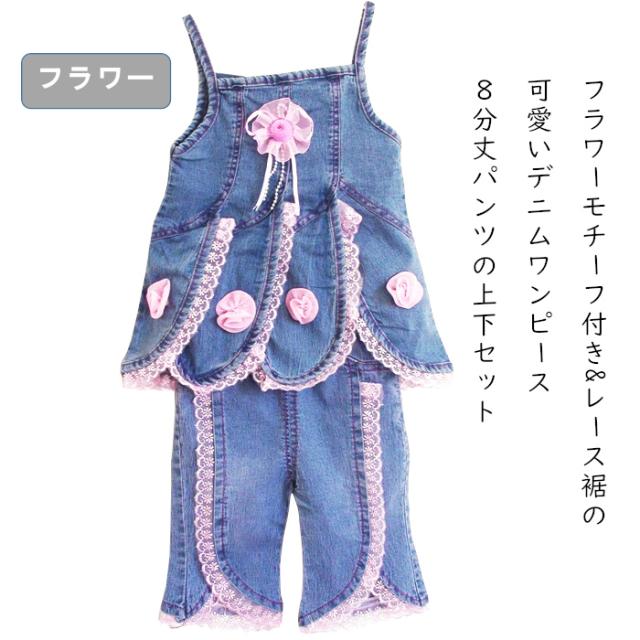 キッズ 子供服 女の子 セットアップ ノースリーブワンピース 春 夏 秋 上下セット お得 子供服 可愛い フラワーモチーフ付き レース裾