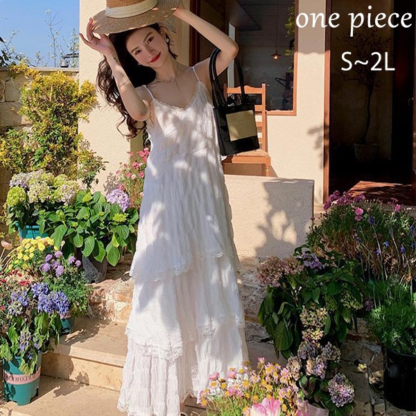 リゾートワンピース 大人可愛い 夏 ロングワンピース リゾートワンピ キャミソール マキシワンピース ハワイ ハワイアン 沖縄 体型カバー 結婚式 七五三 成人式 卒業式 入学式 Aライン 春夏おうち マキシ丈 無地 おしゃれ 韓国 ホワイト ブラック 白 黒 S M L 2L dd028l9
