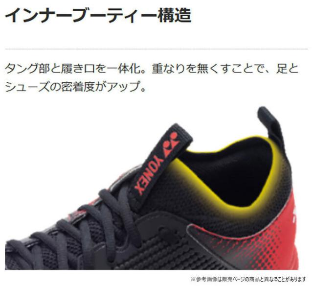 親指の圧迫感を解消したつま先設計とし、かつ、中足部とかかと部のサポート性を高めることで、シューズ内の足のズレを抑え、パワーロスのない素早いフットワークを実現。